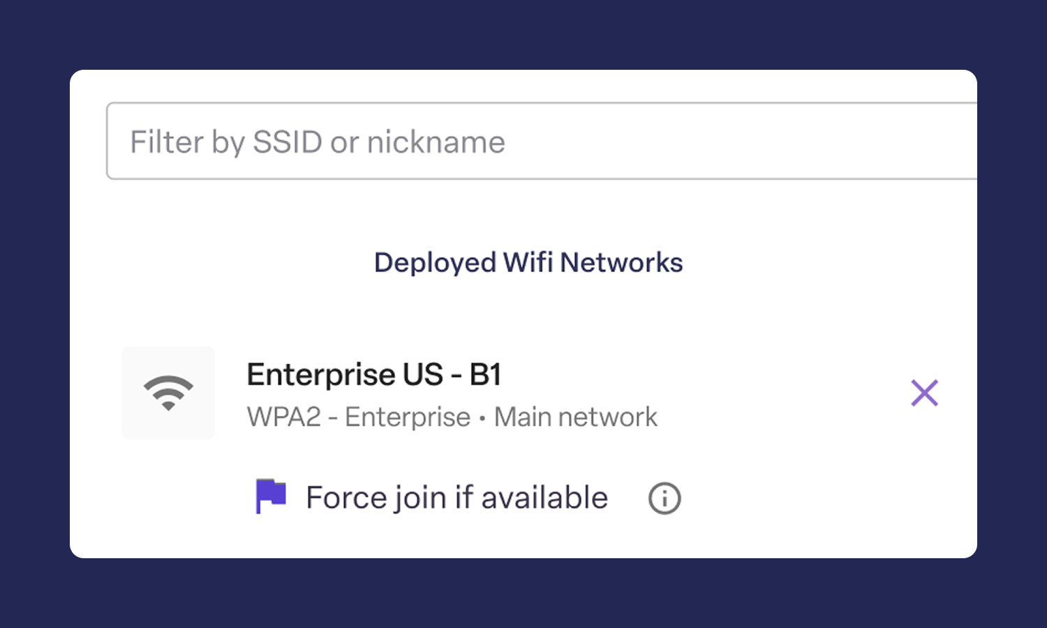 Always connect if available is new Wi-Fi setting available on Configurations. When Always Connect is set, if the network is in range and accessible, a device will automatically connect to it. It will not connect to any other available networks.